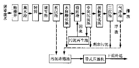 此AB二段組合工藝優點是A段負荷高,污泥絮體具有較強的吸附能力和良好的沉降性能(SV I約為40~50 mL/g),抗沖擊負荷能力很強,對有毒物質的影響具有很大的緩沖作用,特別適于處理濃度較高、水質水量變化較大的廢水。但產泥量較高,需采取相應的污泥處理措施。B段二沉池出水中的少量難沉降的脫落生物膜通過氣浮處理進一步去除,以提高出水水質。