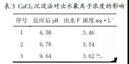 3.3 用NaOH 調節廢水pH 值,以CaCl2作為沉淀反應劑并輔助PAC 的混凝沉淀作用,出水氟離子濃度小于4mg·L-1,達到排放標準,效果穩定。