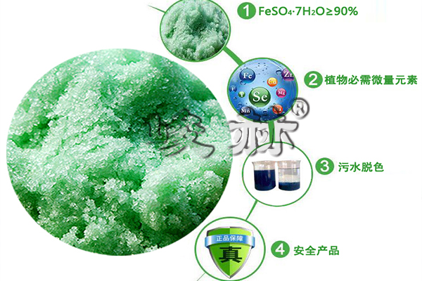 9. 工業上用作制造磁性氧化鐵、氧化鐵紅及鐵藍顏料、聚合硫酸鐵等的原料。水處理工業上用作澄清濁水的混凝劑,用以處理含鉻廢水及含鎘廢水化學合成上用作還原劑及催化劑,如用作玉米淀粉氧化用H2O2分解的催化劑。